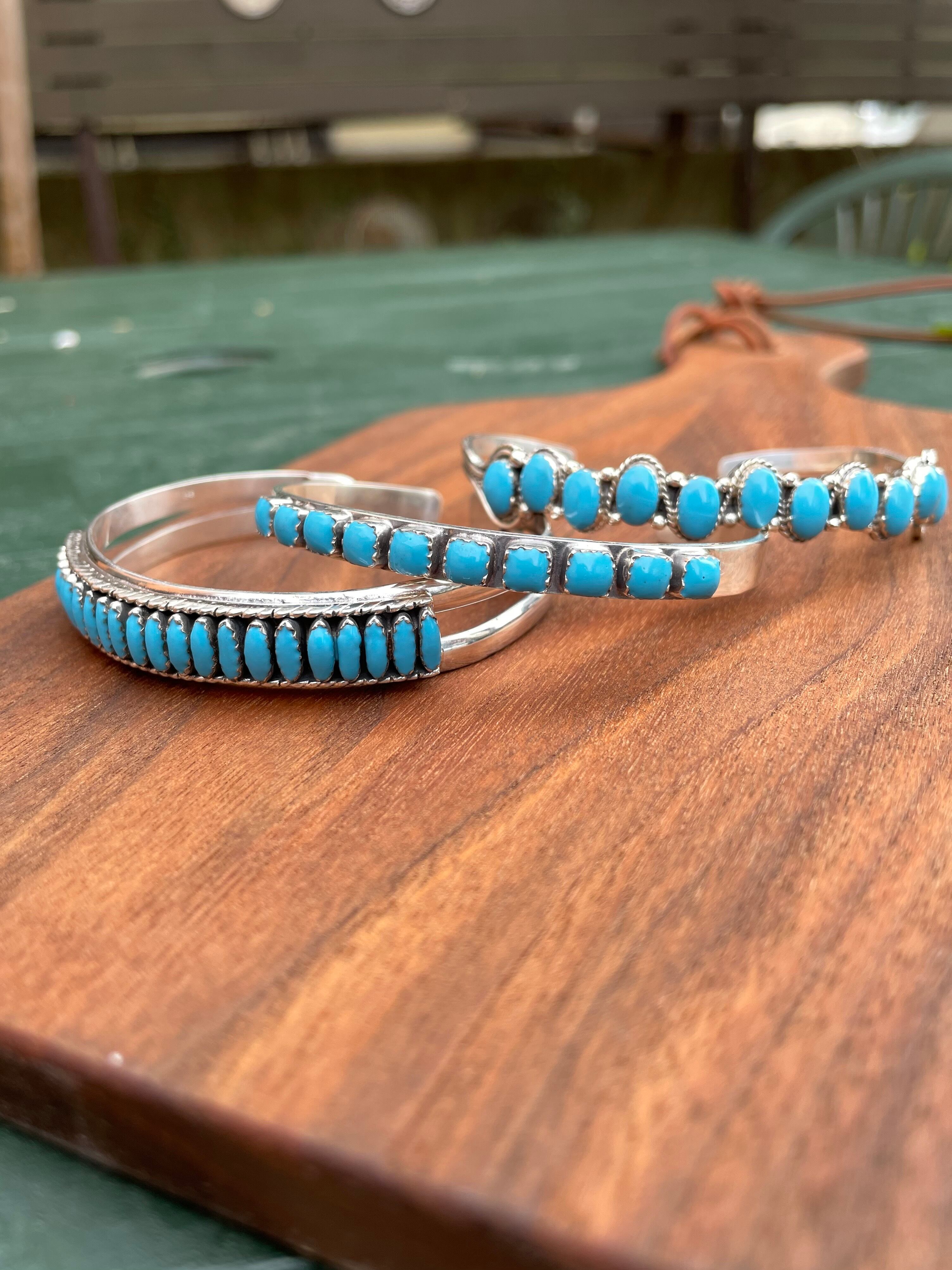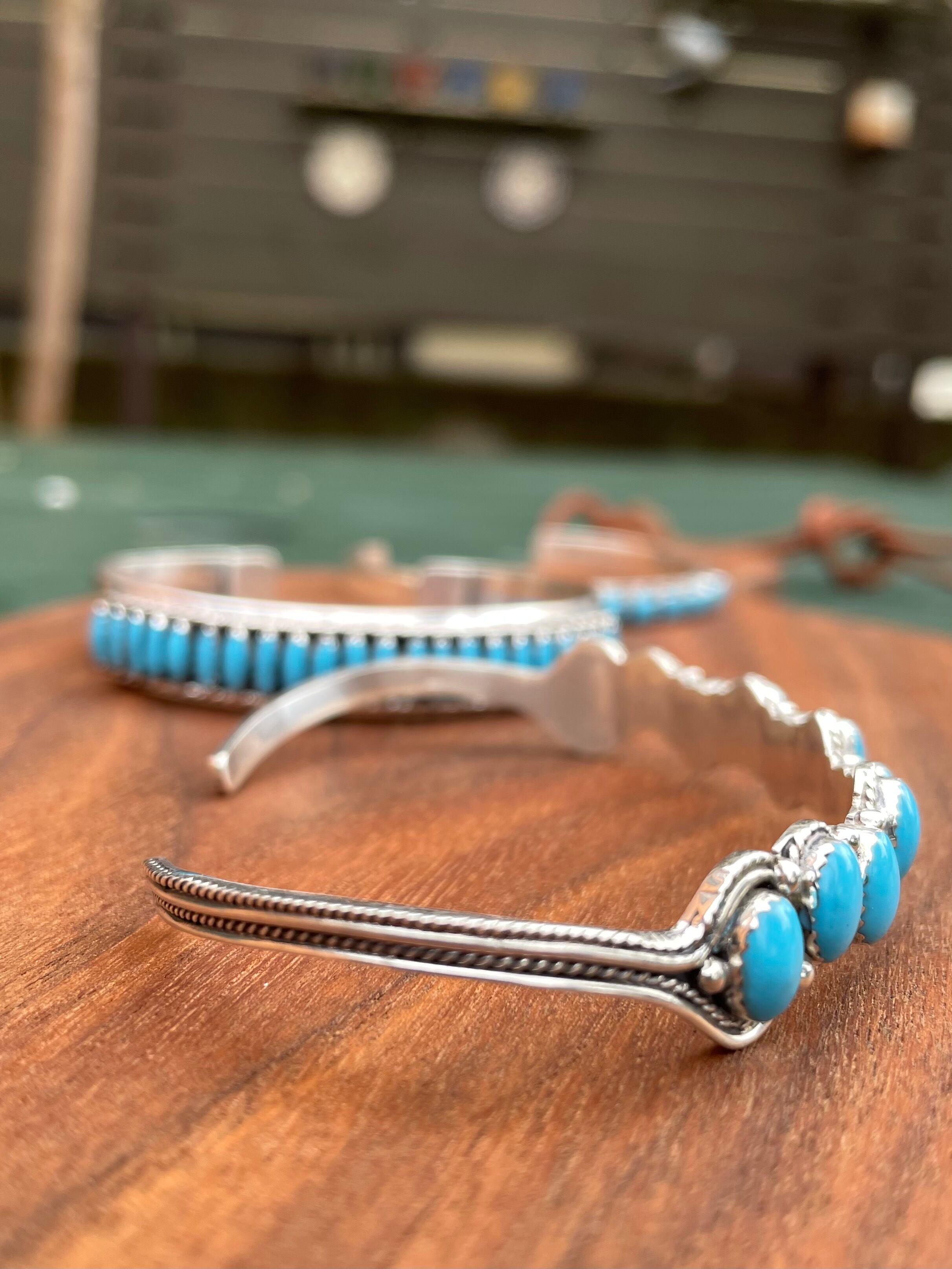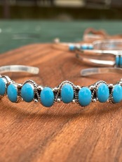 Silver925(刻印入り)とターコイズ石を使ったカーフブレスレット、バングルです。