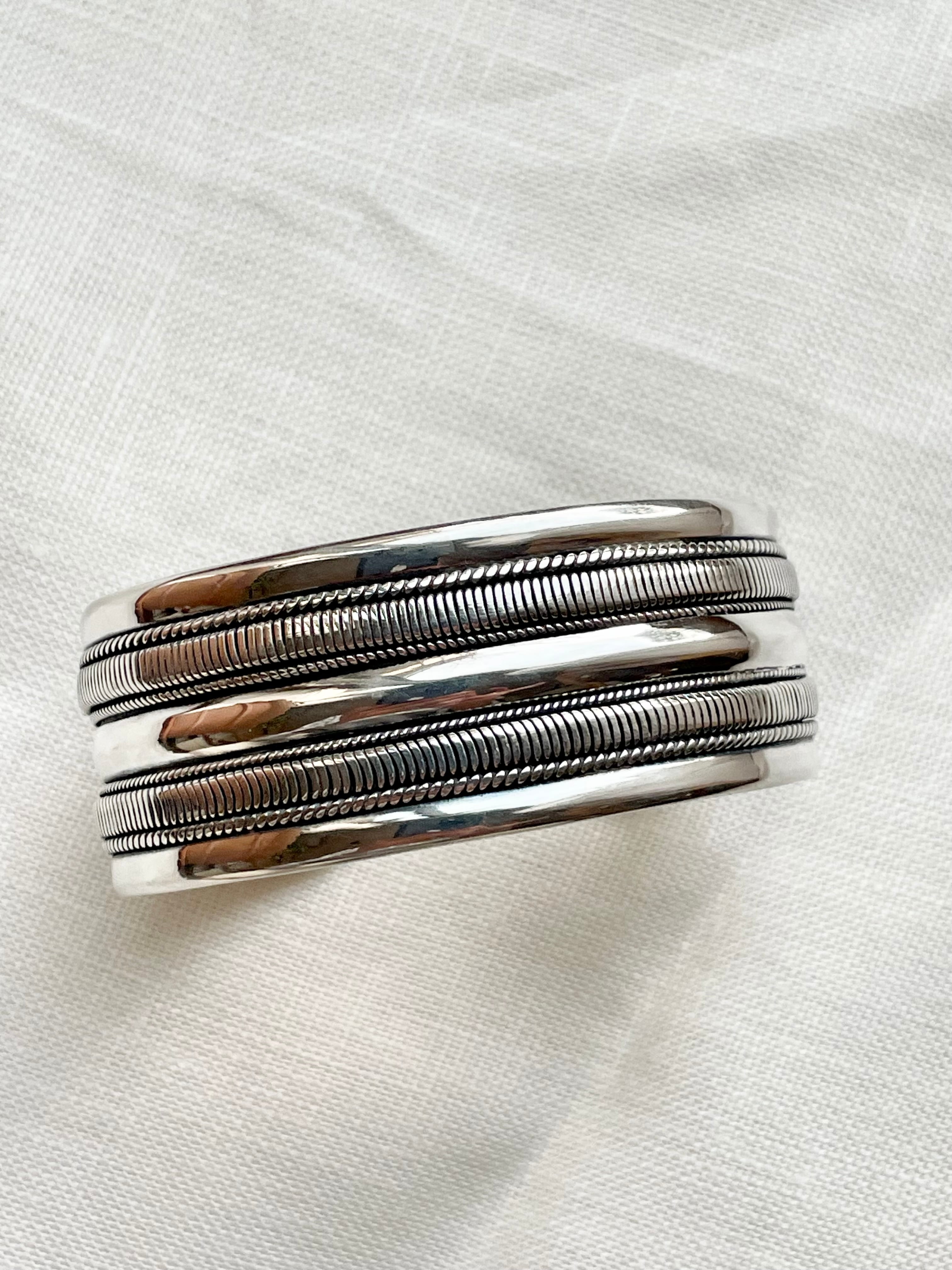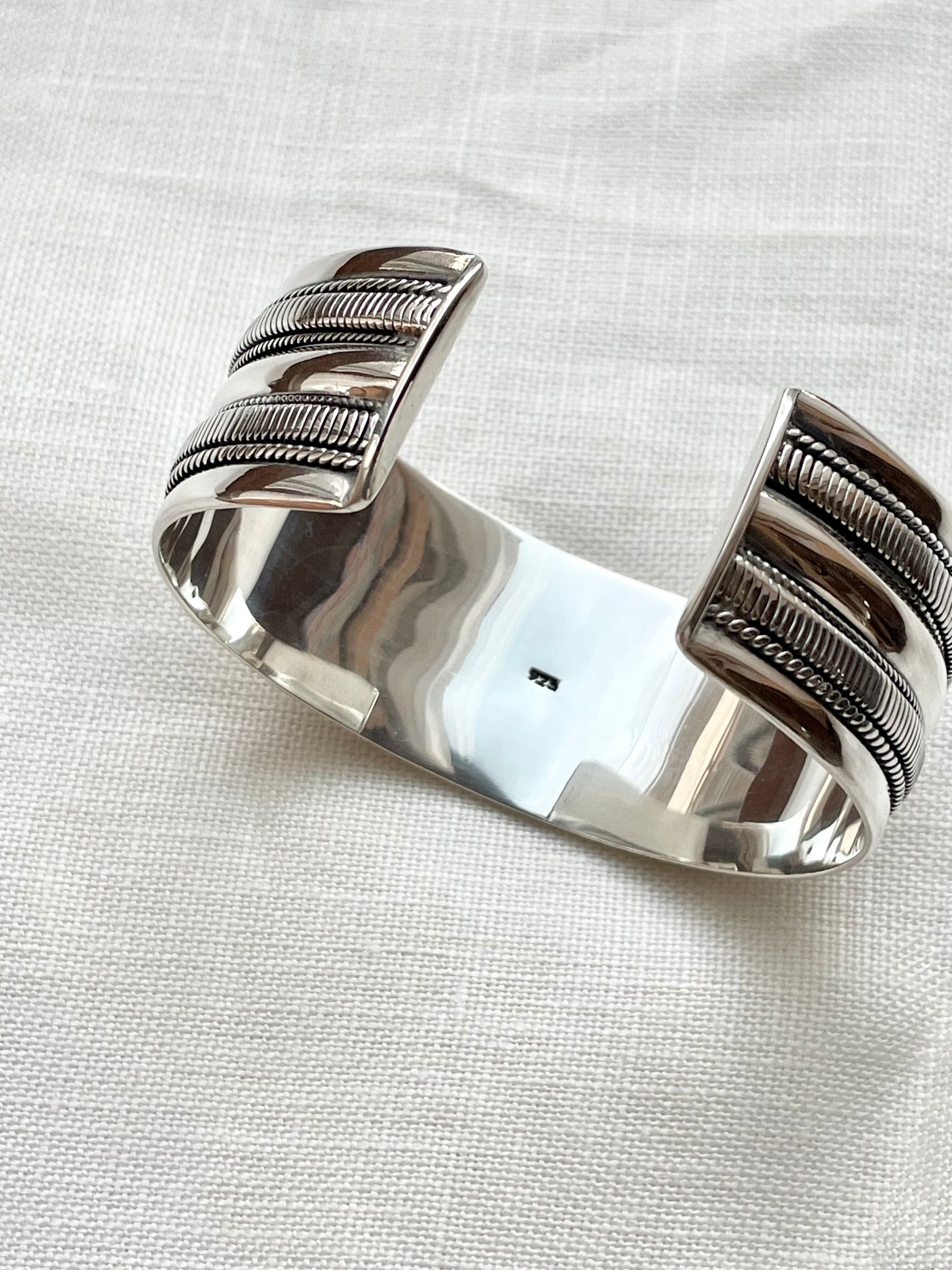 シルバー925の縄目模様をダブル使いにしたボリュームのあるバングルです。