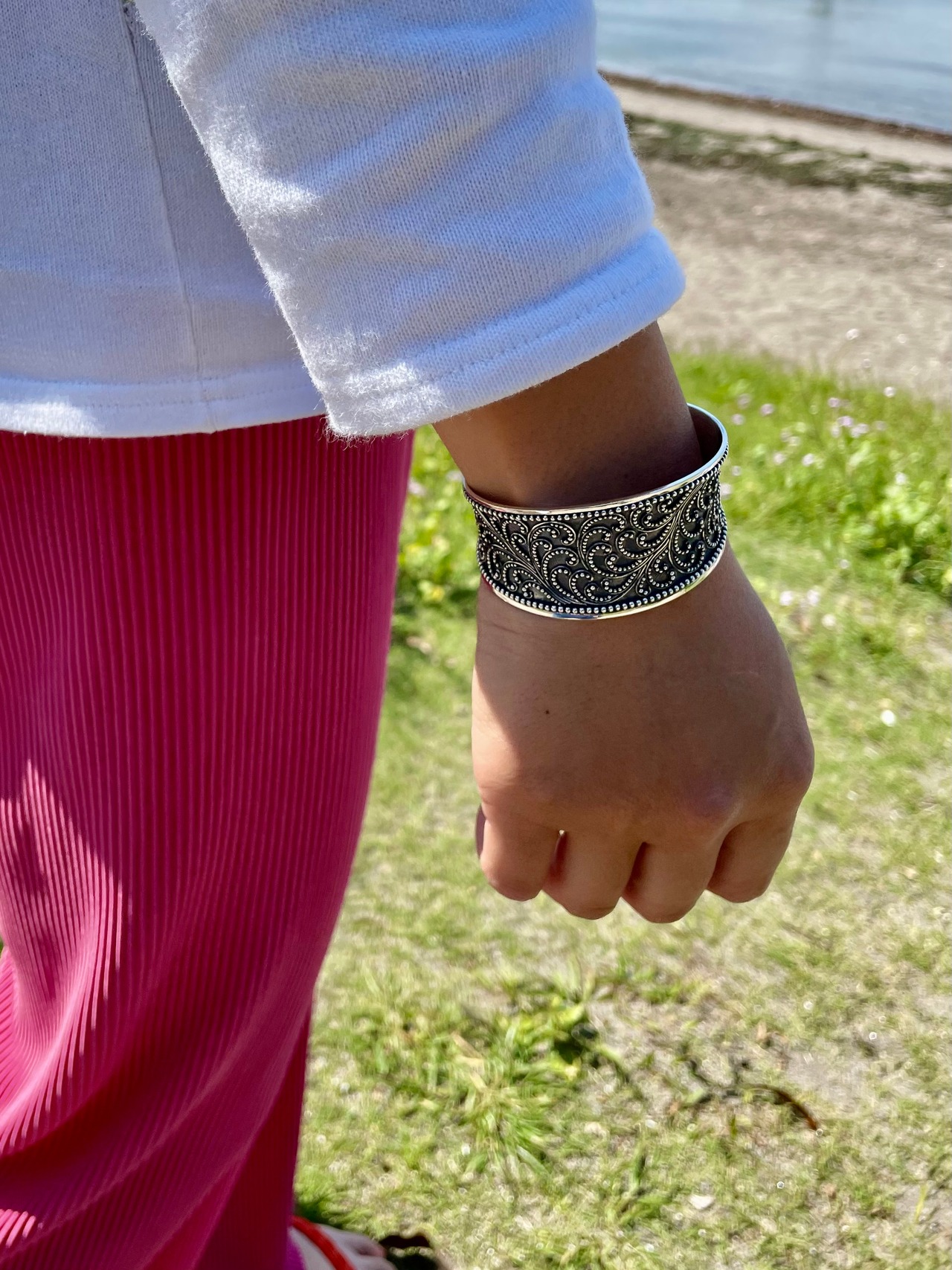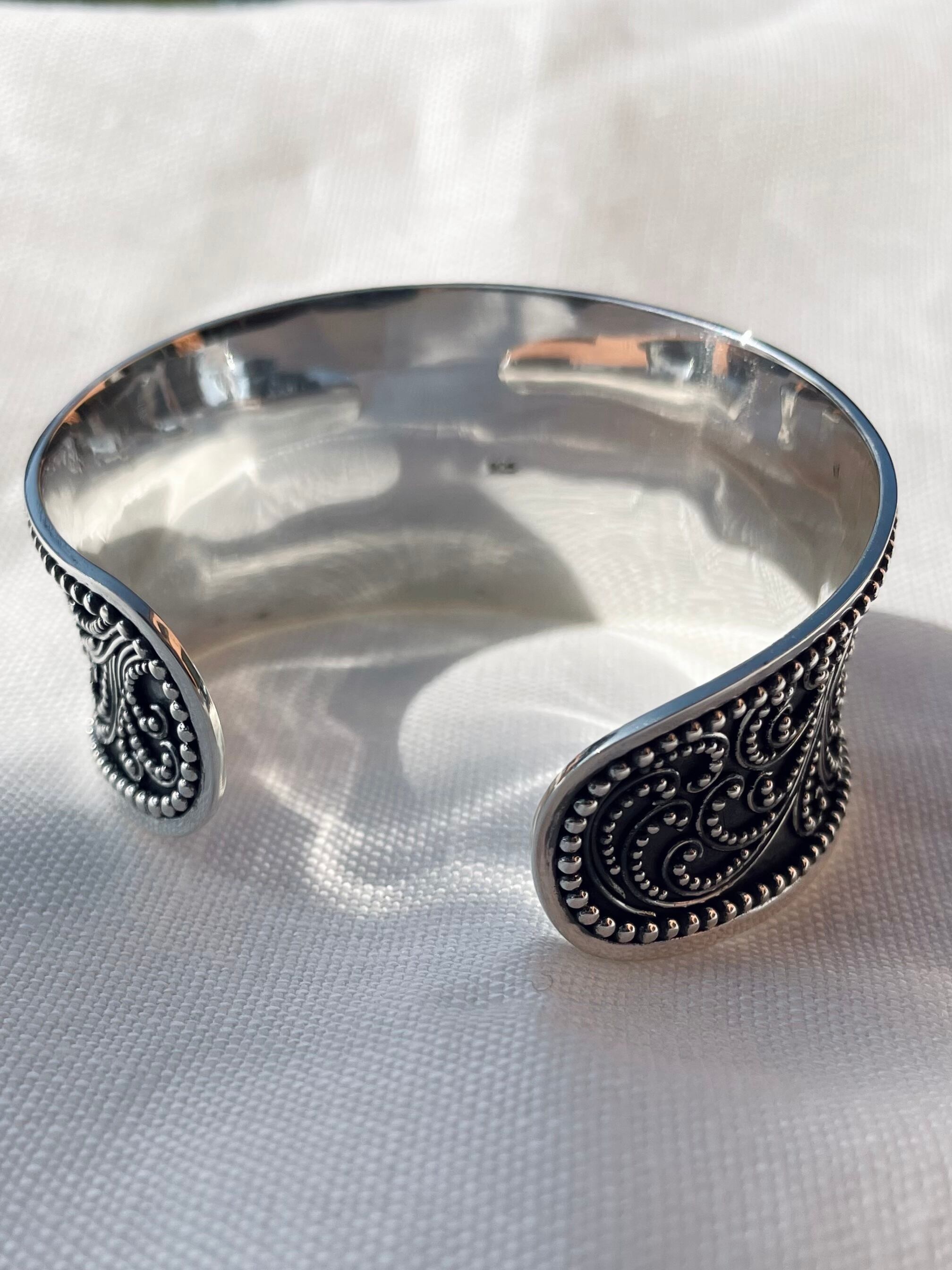 シルバー925使用のオリエンタルな模様が美しいバングルです。